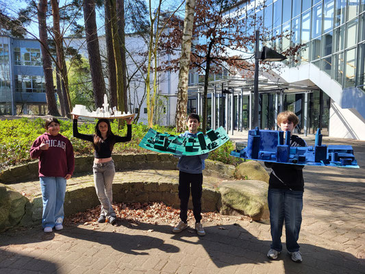 Zuerst haben wir in Gruppen überlegt, welche Daseinsgrundfunktionen in einer Stadt erfüllt werden müssen und dann Wohnhäuser, Straßen, Parks, Geschäfte, Schulen, Verkehrsmittel, öffentliche Plätze und vieles mehr in unserer Planung berücksichtigt. Danach ging es ans Skizzieren und schließlich ans Bauen mit jeder Menge Einfallsreichtum und Teamarbeit.
