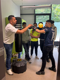 Zum Schluss gab es für einige sogar noch ein spontanes pädagogisches Boxtraining bei Helene im Büro, bei dem Ibo im Schnelldurchlauf die wichtigsten Boxtechniken erklärte. Der Wunsch der Schülerschaft? Das brauchen wir öfter!