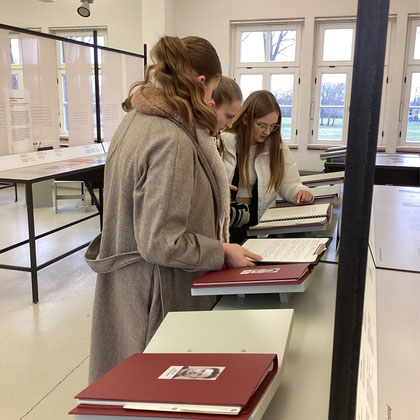 Für Schülerinnen und Schüler gibt es etliche Angebote, sich diesem Ort zu nähern. Im Vorwege hatte die Klasse beschlossen, sich mit Biografien auseinanderzusetzen, also mit Lebensläufen von Opfern und Täter*innen. Gegenstände, Fotos, Zeichnungen, Video- und Audiostationen sowie Informationstafeln veranschaulichen, was dort geschah. Vor allem die schriftlichen Zeugnisse, Dokumente und Berichte der ehemaligen Häftlinge und auch der Vierländer Bewohner*innen, sind Gegenstand unseres Besuchs. Eine Abschlussrunde mit unserem Begleiter vervollständigt diesen Besuch in Neuengamme.